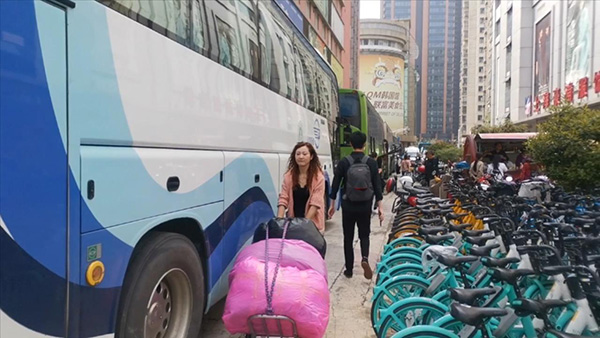 大客车是市场客源的主要输入工具,他们大多来自于长三角区域,一般每天5-6点左右就会抵达新七浦,等待1-2小时,再将采购结束的客户以及货品带回出发地市场。如此每天不下4、5轮次,正是有了这些大客车的往来才活跃了市场。